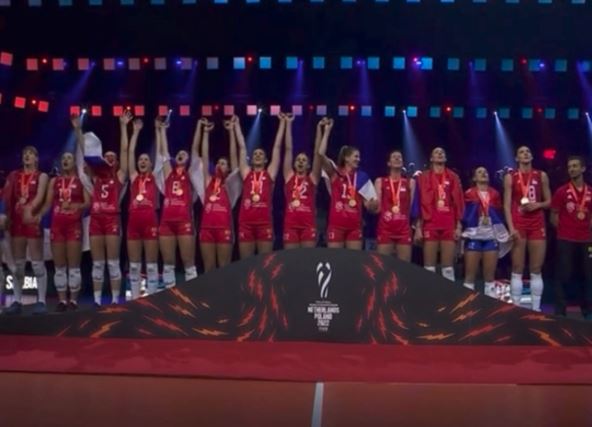 Odbojkašice Srbije osvojile su svetsko zlato, pa su zajedno pevale "Bože pravde". Sve je pucalo od emocija po završetku finala i pobede protiv Brazila (3:0). Zaista neverovatno, dirljivo, sa dosta suza, sve su u glas pevale, odzvanjala je dvorana u Holandiji. Uz Srpkinje su pevali i navijači koji su se nalazili na tribinama. Lepše od ovoga verovatno ne može!