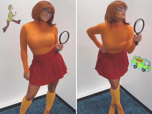 Ona radi na televiziji "Foks sport", živi u Los Anđelesu i jedna je od najpoznatijih voditeljki na ovoj televiziji. Na Instagramu je podelila i snimak u kostimu uz poruku "Rešavam misterije. I tamo je dobila preko 1000 komentara, među kojima je bio i komentar koleginice MJ Akoste Ruiz koja je ptiala "da li može da pozajmi kostim sledećeg meseca za večeru". Pogledajte i kako je to izgledalo:
