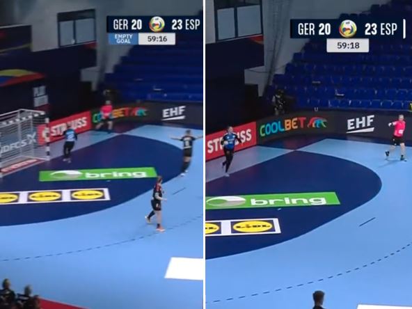 U ključnim trenucima meča jedna od reprezentativki Nemačke napravila je korake kada je krenula u prodor, a sudije su odmah dosudile loptu za Španiju. Mestu na kojem je napravljena greška pritrčala je Dženifer Gutjerez i veoma staloženo loptu lansirala na drugi kraj hale! Pogledajte kako je to izgledalo: