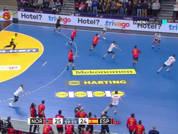 Po novim pravilima rukometa, sudije imaju slobodu da oduzmu loptu ekipi već nakon nekoliko sekundi napada, ukoliko tim u finišu susreta ne pokazuje ambiciju da ugrozi gol rivala. Kako su Norvežani odlučili da se poigravaju, sudije su im uzele loptu, a Španci kaznili neverovatnu neopreznost. Danijel Dušebajev je ostao u ofsajdu i pas sa svoje polovine preciznim udarcem pretvorio u izjednačenje. Pogledajte poslednje sekunde regularnog toka: