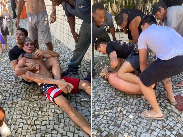 Kolares nije stajao skrštenih ruku, već je pritekao u pomoć žrtvi, a pljačkaš je ubrzo završio na zemlji, uhvaćen u "polugu" i isprebijan! Ostao je nesrećni kriminalac u "zagrljaju" MMA borca sve dok nije stigla policija i uhapsila ga!