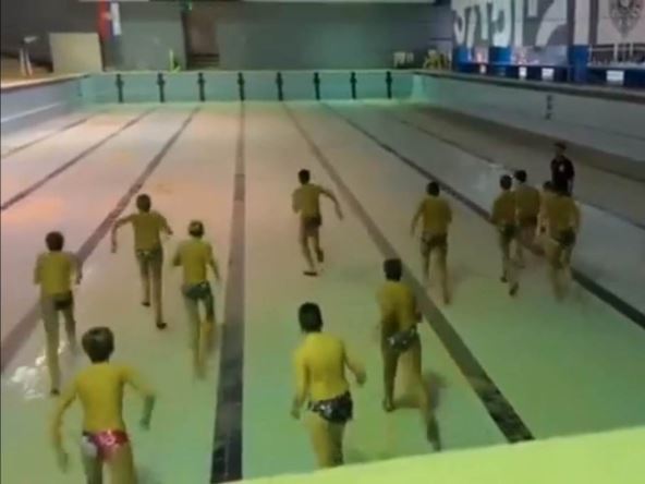 Samo nekoliko dana nakon što je vaterpolo klub Partizan saopštenjem dostavljenom javnosti apelovao na rešavanje problema jer seniori i mlađe kategorije kluba nemaju gde da treniraju i igraju utakmice, sa Banjice stiže šokantan snimak. Dečaci koji igraju za mlađe kategorije crno-belih treniraju vaterpolo, ali u praznom bazenu!