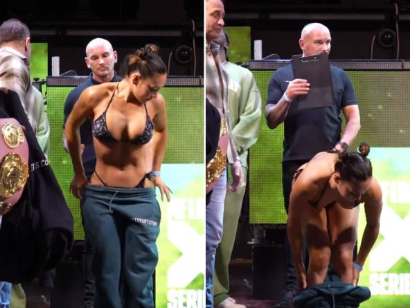 Dosadašnja šampionka zapretila je rivalki da će je pogoditi u bradu i tako završiti meč, ali okršaj u subotu uveče u Lidsu nije išao po njenom planu. Eli Bruk - koja je nedavno bila u centru pažnje jer je MMA borac "završio" pred kamerama - uspela je da dođe do pobede nokautom u trećoj od predviđenih pet rundi. Ipak, više se pričalo o merenju pred meč. Pogledajte kako je to izgledalo: