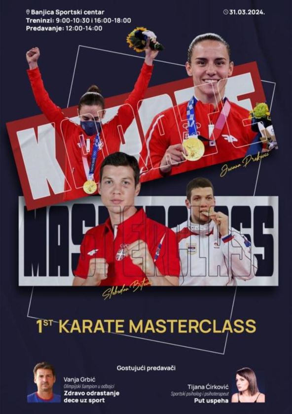 Ljubitelji karatea i sporta u celini saznali su sjajnu vest - 31. marta u Sportskom centru "Banjica" u Beogradu biće održan prvi Karate Master Class! Okupiće takmičare svih uzrasta, trenere, roditelje i sve zaljubljenike u karate, koji će imati jedinstvenu priliku da razgovaraju sa najuspešnijim karatistima, Jovanom Preković i Slobodanom Bitevićem, osvajačima olimpijskih, svetskih i evropskih medalja.