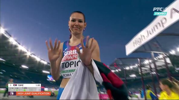 Mlada srpska atletičarka Angelina Topić plasirala se večeras u finale Evropskog prvenstva u atletici na otvorenom u Rimu pošto je preskočila normu od 192 centimetra. Pogledajte skok kojim je Angelina Topić obradovala naciju, postavši i najmlađa koja je uspela da preskoči kvalifikacionu normu za finale: