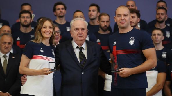 "Članovi Izvršnog odbora prihvatili su predlog Sportske komisije OKS da nosioci zastave Srbije na otvaranju budu višestruki olimpijski, svetski i evropski šampioni - vaterpolista Dušan Mandić i odbojkašica Maja Ognjenović. Šef misije OKS biće Sonja Vasić", pisalo je u saopštenju OKS dostavljenom medijima 10. jula.