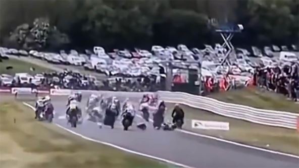 Čak 11 motora se sudarilo na prvoj krivini u "Ulton Parku", a osim dvojice preminulih ozbiljno je povređeno još tri vozača, dok su trojica ostala pravim čudom nepovređena. Pogledajte kako je izgledao ovaj sudar na samom startu trke: