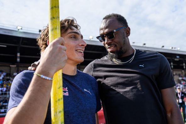 Pre njegovog skoka prišao mu je legendarni Bolt, imali su kratak razgovor, zagrljaj i pozdrav i onda je usledio novi momenat za istoriju. Ono šta je Usein radio u trkačkim disciplinama, to Mondo radi sa motkom u rukama, zaista je neverovatno...
