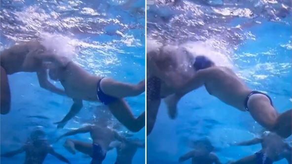 Usred meča je jedan italijanski vaterpolista uvukao rivala pod vodu, držao mu je glavu pod vodom, a onda ga je kolenom udario u glavu. Potez koji više liči na neki borilački sport nego na vaterpolo. Usledilo je gledanje snimka i naravno da je dosuđen "brutaliti" odnosno kada su potezi jednog igrača preterano agresivni i prelaze granice...