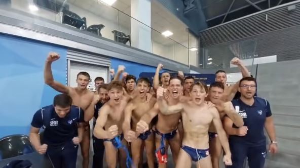 Tada je kamera prešla na srpske vaterpoliste koji su uglas, zajedno skandirali "Srbija, Srbija, Srbija".