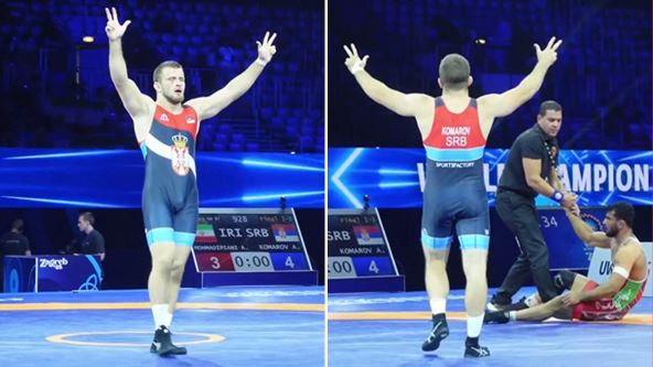 Srpski rvač Aleksandar Komarovosvojio je zlato na Svetskom prvenstvu u rvanju u Zagrebu, a sada hrvatski mediji žele da ga vlasti kazne zbog proslave nakon pobede u finalu.