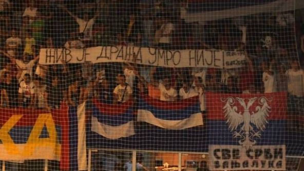 Senku na meč protiv Tunisa bacili su pojedinci među navijačima koji su tokom prvog poluvremena okačili transparent sa likom generala Ratka Mladića, optuženog za ratne zločine u BiH, kao i jedan posvećen četničkom vođi Draži Mihajlovići i nekoliko zastava ravnogorskog pokreta.