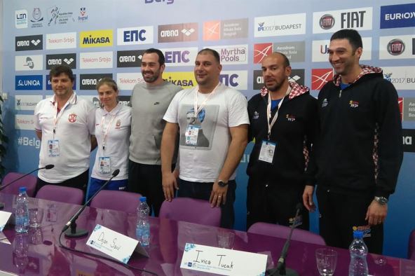 "Srbija je sutra ogroman favorit u našoj utakmici i sve osim njihove pobede biće veliko iznenađenje, što nam je i Deki malopre potvrdio (osmeh). Drago mi je što je Deki stavio Hrvata na majicu... Šalim se malo... Više je zanimljiva utakmica zbog folklora, ali to je vaterpolo klasik. Biće, uveren sam, puna Arena", rekao je on.