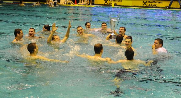 Vaterpolisti Partizana odbranili su titulu šampiona Srbije, pobedom nad Crvenom zvezdom (2-0 u mečevima finalne serije), a senku na proslavu bacio je nepromišljen gest dvojice igrača crno-belih, Dimtirija Rističevića i Nemanje Vice, koji su posle meča držali transparent sa uvredljivom porukom na račun Crvene zvezde.