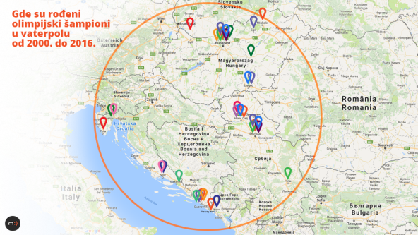 Od Sidneja na ovamo, dakle računamo li poslednjih pet olimpijskih turnira, šampioni su bili vaterpolisti Mađarske, Hrvatske i Srbije. Zaokružite sad to na mapi Evrope i dodajte Crnu Goru, Italiju i Grčku, koje su teritorijalno blizu, a takođe su bile u borbi za medalju. U polufinale su se (eventualno) plasirale Španija, Rusija i Sjedinjene američke države. Uporedite samo ovu mapu sa teritorijama koje zauzimaju Rusija ili SAD.