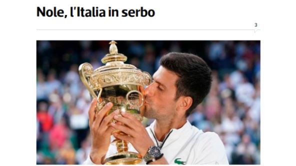 Novakov gest oduševio je glavnog urednika Savijera Jakobelija, rodom iz Bergama, koji u autorskom tekstu sa naslovom "Nole, Italija na srpskom" odaje priznanje najboljem teniseru sveta.