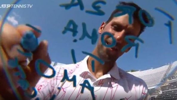 Na startu mastersa u Rimu pobedio je bez većih problema Salvatorea Karuza u dva seta (6:3, 6:2), a svi su se pitali šta će napisati na TV kameri. Tradicija nalaže da teniser koji pobedi može da ostavi poruku kakvu želi, a srpski teniser je izabrao one koji mu nedostaju...