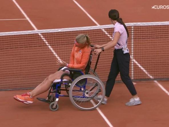 Ona se posle maratonskog meča, dužeg od tri sata, žalila na užasan bol u nozi i zato su redari morali da joj dovezu kolica i da je u prisustvu lekara turnira isprate u svlačionicu.