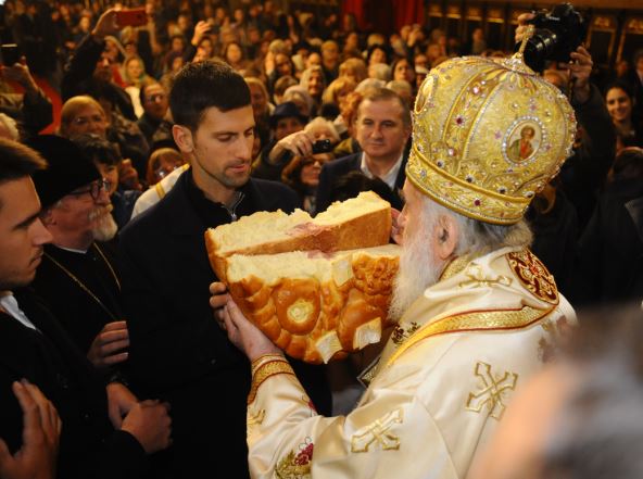Dokumentovano je i da je Đoković krsnu slavu Aranđelovdan proslavio 2017. godine u društvu patrijarha Irineja, kada je u pratnji oba brata i strica došao u Sabornu ckrvu kako bi presekao slavski kolač.