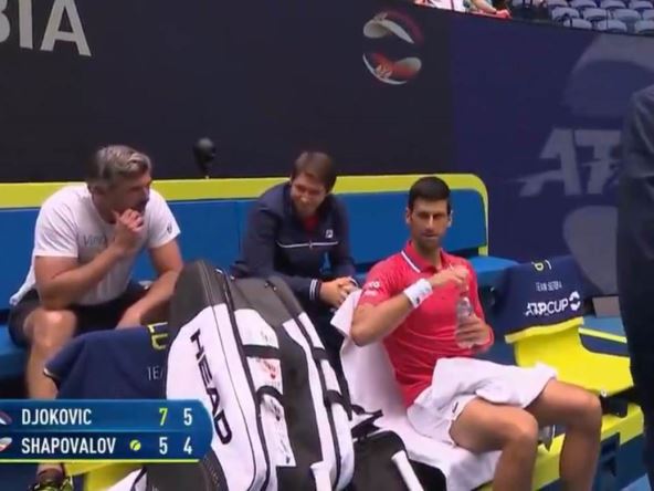 Naime, posle poraza Dušana Lajovića od Miloša Raonića, Đoković je morao da pobedi Šapovalova, što je i uradio, ali se pri rezultatu 7:5, 4:3 razbesneo.