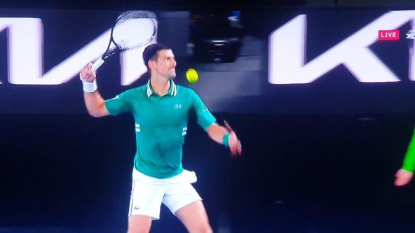Tako je početkom četvrtog seta Đoković besno odreagovao gledajući u pravcu boksa u kom sedi njegov tim, pa je čak delovao kao da će ispucati lopticu u njihovom pravcu.