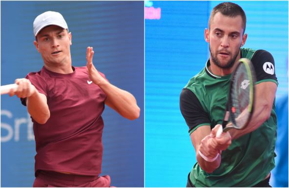 Maestralnim tenisom poveo je Miomir. Najpre su u prvom setu razmenili po brejk srpski teniseri, ali onda je Kecmanović u završnici još jednom uspeo da oduzme servis Laslu i tako dobije 1:0.