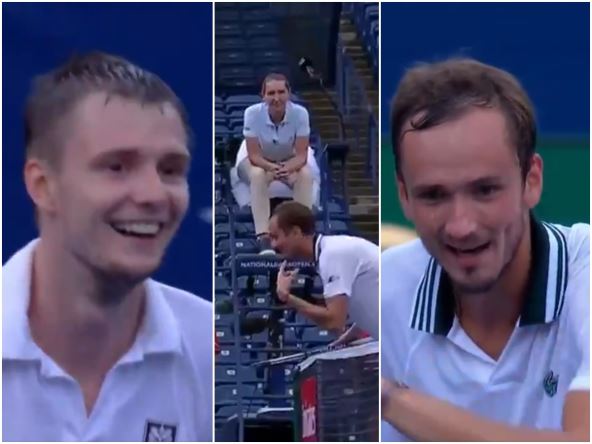 "Da li možeš da zamisliš ovo? Ja sam imao loptu na reketu, za smeč. Ti nisi imao šta da udariš. Da li možeš da zamislip koliko je ovo glupo što je ona uradila", govorio je Medvedev svom rivalu, kojeg je sve to nasmejalo.