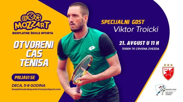 Da i “beli sport” bude dostupan svoj deci! Kompanija Mozzart je u saradnji sa proslavljenim sportistima proletos pokrenula veliki projekat Besplatne škole sporta, a posle fudbala, košarke, odbojke i rukometa, mališani će dobiti priliku da se oprobaju i na teniskoj mreži! Otvoreni čas na kome će biti odabrano 60 polaznika uzrasta od pet do osam godina održaće se u subotu, 21. avgusta u 11. časova, na terenima TK Crvena zvezda (Mije Kovačevića 9, Beograd), a specijalni gost biće Viktor Troicki!