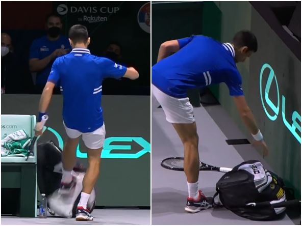 Svestan da je Srbija u bezizlaznoj situaciji, Đoković je svoj stres i bes iskalio na svojoj torbi pored klupe Srbije, tako što ju je šutnuo levom nogom.