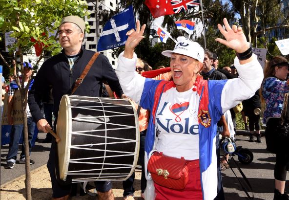 Srpski iseljenici u Australiji ni danas nisu odustali od pružanja podrške najboljem teniseru sveta, a zanimljiv je i jedan navijač koji je pred hotel došao sa kačketom Srbije na glavi i obučenim dresom fudbalske reprezentacije Hrvatske.