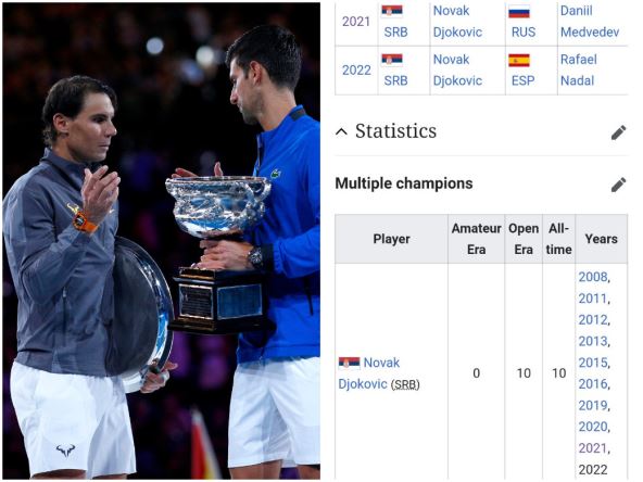Tako je na stranicama engleske Vikipedije, najveće internet "enciklopedije", već objavljeno da je Novak Đoković osvajač Australijan opena za 2022. godinu. Taj turnir počinje 17. januara, još postoje načini da Novaka deportuju iz zemlje, ali neko ga je već proglasio za šampiona.