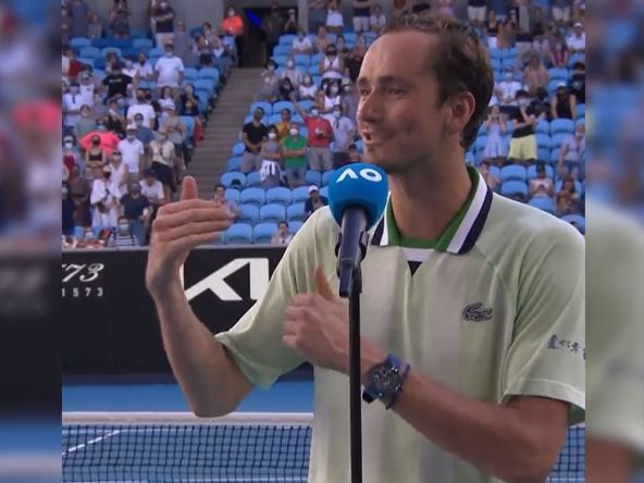 Da je Medvedev raspoložen, znajući da su mu sada potrebne još četiri pobede ne bi li 21. februara postao najbolji teniser sveta, pokazao je i posle meča.