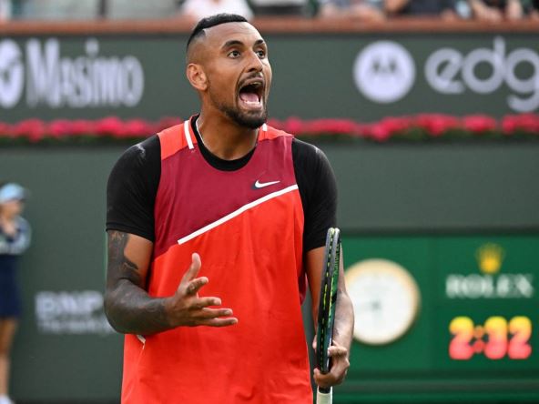Kontroverzni Australijanac Nik Kirjos napravio je haos posle poraza u duelu protiv Rafaela NAdala na Indijan Velsu. Čim se pozdravio sa Špancem besno je razbio reket bacivši ga o tlo i to taok da je umalo pogodio u glavu momka koji je sakupljalo loptice.