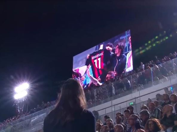 Publika je počela da zviždi navijaču koji je na ovaj način želeo da "provocira" Rimljane. Čim su ga videli na velikom ekranu kako maše dresom Ibrahimovića - razljutili su se i tako konačno pokazali emociju u meču koji je za Novaka Đokovića najvažniji u dosadašnjem delu turnira.