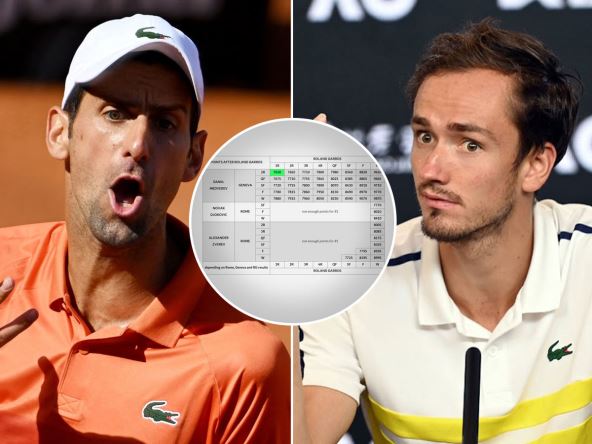 Kada se Novaku oduzmu bodovi sa prošlog Rolan Garosa on će ostati na 6.770 poena. Medvedev će posle oduzimanja tih bodova imati 7.800, što znači da je sa ovih 180 stigao do 7.980 bodova koliko će imati narednog ponedeljka. Računica je jasna, čak i da Novak stigne do finala i tek tamo izgubi sa 1.200 bodova osvojenih u tom slučaju imao bi ukupno 7.970 ATP poena - deset manje od Medvedeva!