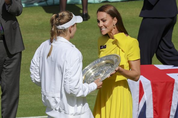 Bilo je vrlo zanimljivo videti pricezu Kejt Midlton koja je Ribakinovoj uručila trofej Vimbldona, pošto su se upravo iz kraljevske porodice plašili kako bi za njih izgledalo da usred ratnih dešavanja nagrade Ruse. Crne slutnje su im se ostvarile, iako Ribakina tehnički nije više Ruskinja.