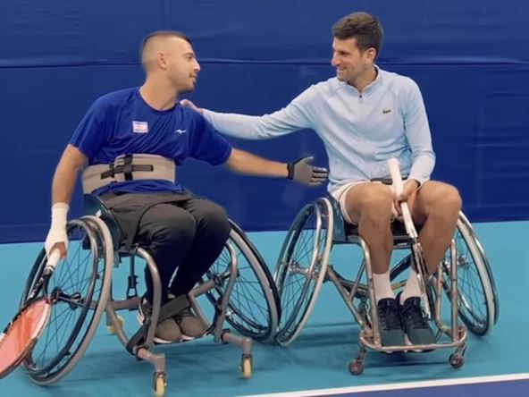 Na snimku koji je objavljen na Instagramu Novak je prvo razgovarao sa njim. Slušao je savete o tome kako da pomera kolica, šta treba da radi, kako da se pravilno pozicionira za udarce. Posle svega toga stali su na suprotne strane mreže i razmenili udarce. Definitivno momenat koji ni jedan ni drugi neće zaboraviti. "Ilaj, bilo je sjajno igrati sa tobom", poručio je Novak putem društvenih mreža.