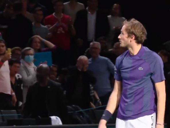 Nakon što je izgubio meč u tri seta, Danil Medvedev je lomio reket na putu ka mreži, a zatim i vređao publiku u Parizu. Sa njegovih usana ne može jasno da se pročita šta je izgovarao u pravcu gledalaca jer je bio okrenut ka njima, ali po gestikulaciji je jasno da se Danil raspravlja nakon nesportskog poteza.