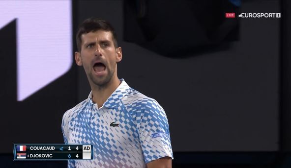 Novak Đoković igra meč drugog kola na Australijan openu protiv malo poznatog Francuza Enca Kuakoa. Dobio je prvi set rutinski, ali se u drugom žestoko muči, tražio je i medicinski tajm-aut zbog problema sa povredom zadnje lože. Zbog svega toga je veoma nervozan.