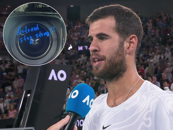 Hačanov je na kraju meča na kameri ispisao poruku podrške Nagorno-Karabahu, regionu oko kog se decenijama spore Azerbejdžan i Jermenija, zbog čega su odmah stigle osude i zahtevi za reakciju Australijan opena.