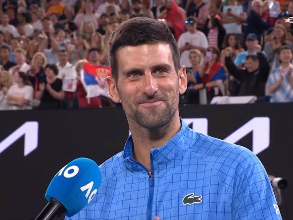 "Moje prvo polufinale, bilo je na US Openu 2007. godine. Tada sam izgubio u finalu od Federera...", rekao je Novak Đoković, a onda napravio šmekerski potez zbog bivšeg tenisera, sa kojim je godinama imao ljute bitke i koji mu i te kako nedostaje: "Ljudi, hajde da aplaudiramo Rodžeru! Zaslužio je to. Imali smo sjajne bitke godinama, nedostaje tenisu. Video sam da se sprema za fešn vik, video sam i da skija, tako da želim da ga izazovem da se trkamo za nekoliko godina. Uživa u životu i to je lepo, pozdrav za njega i njegovu porodicu!".