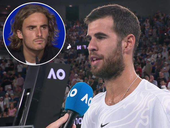 Na pitanje novinara kako bi Cicipas mogao da iznenadi Đokovića, ruski igrač se nasmejao. "Možda bi trebalo da okrene Danila Medvedeva. Jedinog igrača iz naše generacije koji je pobedio Novaka u finalu grend slema. Ne znam da li će to da se dogodi, ali možete da mu prenesete moj savet", sa osmehom je odgovorio Hačanov.