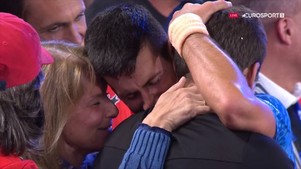 Najbolji srpski sportista savladao je Stefanosa Cicipasa, a zatim odmah otišao do svoje porodice. U zagrljaju brata Marka i majke Dijane Novak Đoković nije ni pokušao da zaustavi emocije, suze su počele da teku, a srpski teniser pokazao da nije mašina iako na teniskom terenu tako deluje. Pogledajte kako je to izgledalo: