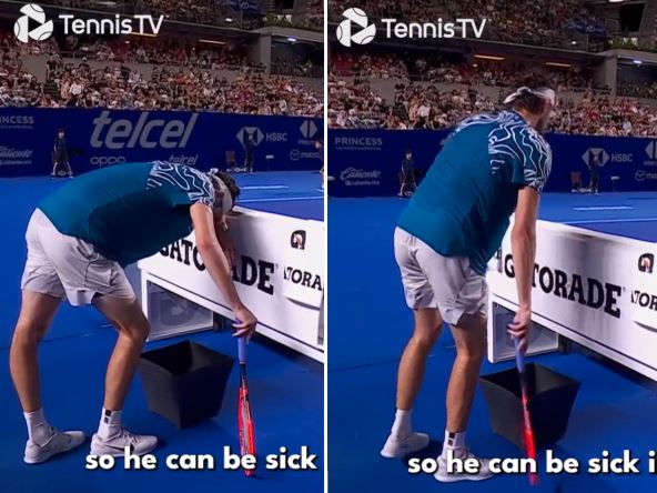 Amerikanac je osetio da mu nije dobro, rukom je prekrio usta i krenuo ka klupi, a sudija iz stolice prepoznala je o čemu je reč. Ona nije obraćala pažnju na vreme koje Fricu ističe, jer je on već uzeo loptice za servis u ruke, već se potrudila da mu olakša situaciju tom prilikom. Pored stolice američkog tenisera uskoro se našla posuda koju je on iskoristio, a zatim se brzo vratio na teren. Pogledajte kako je to izgledalo: