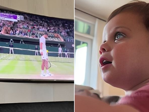 "Moj suprug jako liči na Novaka Đokovića, ljudi ga stalno zaustavljaju. A pogledajte šta se sad dogodilo", ispričala je Lusi u viralnom snimku u kojem se vidi njihovo dete kako upire prstom u TV i govori: "Tata!".