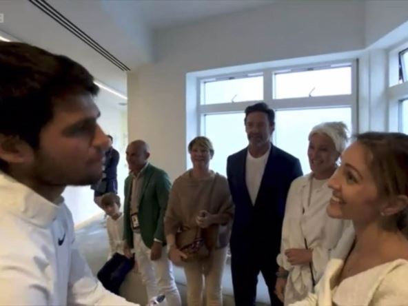 Zapravo je skoro kompletan Novakov boks sišao do hodnika i tu se pozdravio sa Karlitosom, čestitao mu na velikom uspehu, a ovu "delegaciju" predvodila je Jelena Đoković. Sa njom su osim Stefana bili Eduardo Artaldi i Elena Kapelaro, vrlo bitni članovi Novakovog tima.