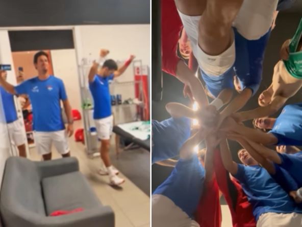 Pred meč smo videli da u timu vlada sjajno raspoloženje, a Novak Đoković je vodio pesmu u svlačionici! Nekoliko sati pred početak mečeva protiv Čeha pevao se "Marš na Drinu" u svlačionici Srbije!