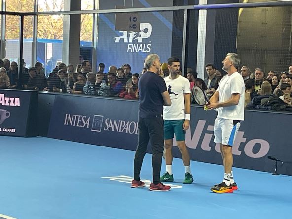 Novak Đoković odradio je trening u Torinu pred polufinalni meč na Završnom mastersu. MONDO je bio na licu mesta, a prvi reket planete radio je na nekoliko detalja, iako nije u tim momentima znao ključnu informaciju - ko će mu biti rival. Zbog svega toga imao je nekoliko razgovora sa Goranom Ivaniševićem.