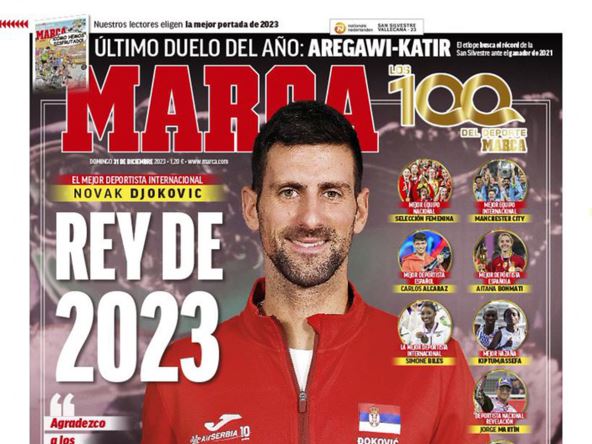 "Zahvalan sam čitaocima što su me izabrali", rekao je Nole povodom izbora "Marke", dok je na naslovnoj strani uz njegovu fotografiju napisano: "Kralj 2023. godine". A i kako da ne bude uz tri grend slema, dva mastersa i završni masters u Torinu, dok vrlo dobro znamo da je bio blizu i kalendarskog slema u 36. godini.