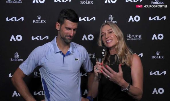 Novak Đoković prošao je u polufinale Australijan opena i onda je pravio šou pred kamerama. Prvo sa Nikom Kirjosom, a onda sa Barbarom Šet. Stao je pored prelepe voditeljke i analizirao dešavanja sa terena.